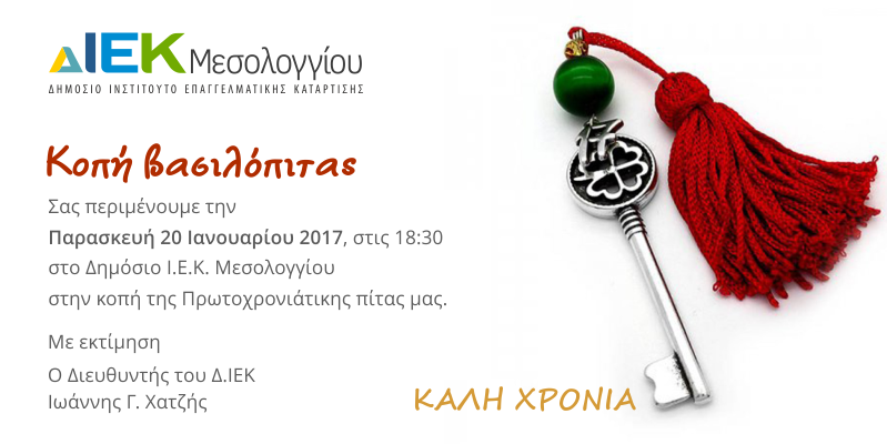 Το Δ.ΙΕΚ Μεσολογγίου προσκαλεί στην κοπή της βασιλόπιτας