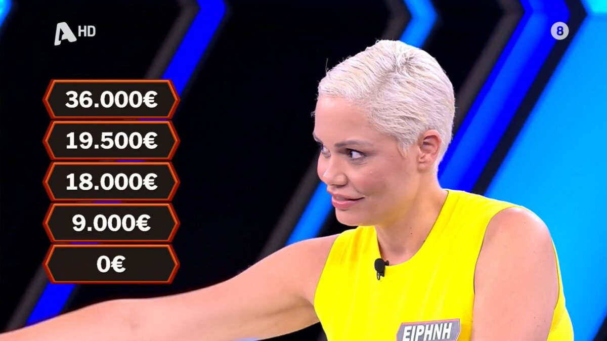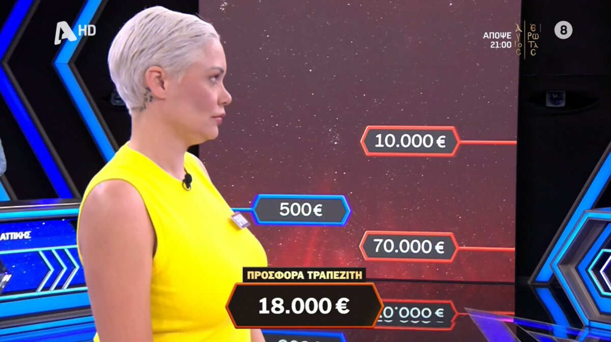 Λίγο πριν το τέλος δε θέλησε να ρισκάρει άλλο και δέχθηκε την προσφορά των 18.000 ευρώ, έπειτα ο Τραπεζίτης ανάμεσα σε δύο μεγάλα ποσά θα της έδινε το δικαίωμα της ανταλλαγής κάτι που έκανε αν και το αποτέλεσμα δε θα μπορούσε να αλλάξει μιας και σταμάτησε.