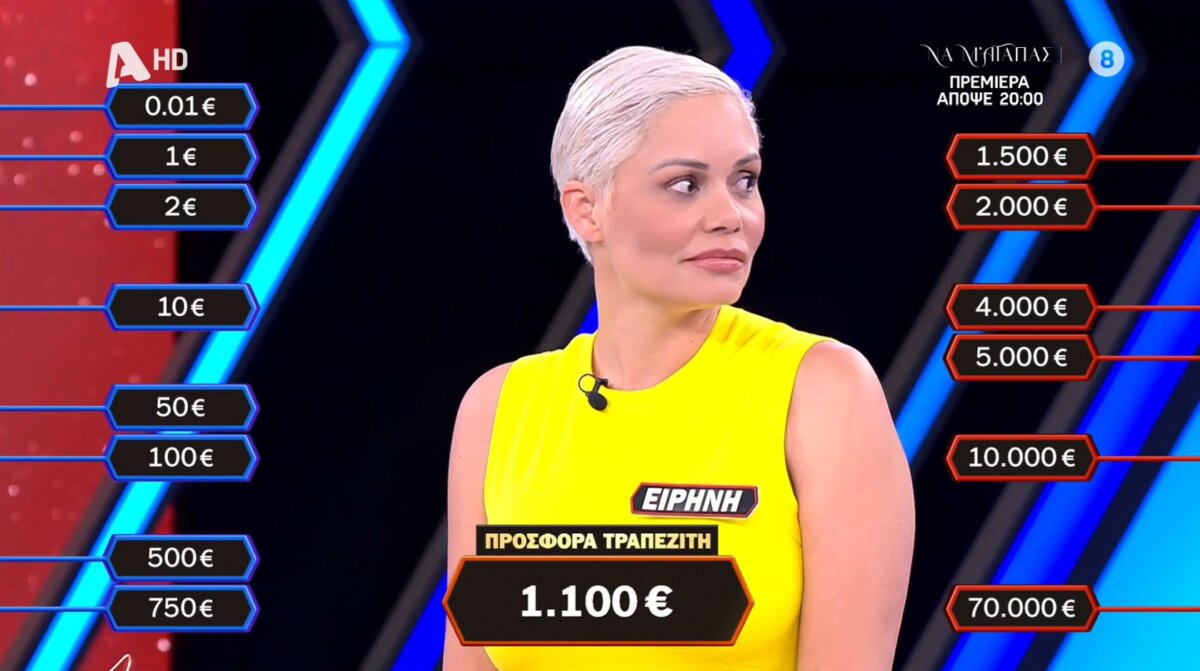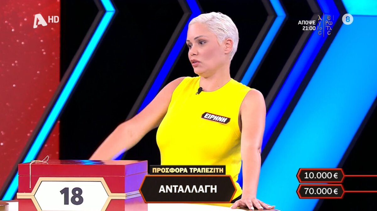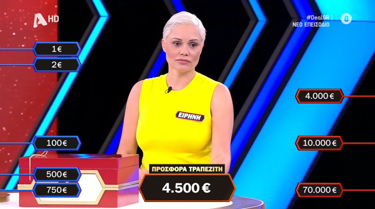 Στο «Deal» το απόγευμα της 6ης Οκτωβρίου η Μεσολογγίτισσα Ειρήνη Κεβεζέ σταμάτησε στις 18 χιλιάδες ενώ με ανταλλαγή θα έπαιρνε τις 70.000 ευρώ!