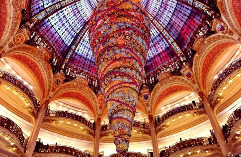 Σπάζοντας την παράδοση, το πολυτελές δέντρο που κρεμάστηκε από την οροφή του παριζιάνικου εμπορικού κέντρου, εμοιάζει να ίπταται πάνω από τα κεφάλια των επισκεπτών. Το 25 μέτρων ύψους ανάποδο δέντρο, υπήρξε ένα πρωτότυπο θέαμα, το οποίο κάθε άλλο παρά απαρατήρητο πέρασε