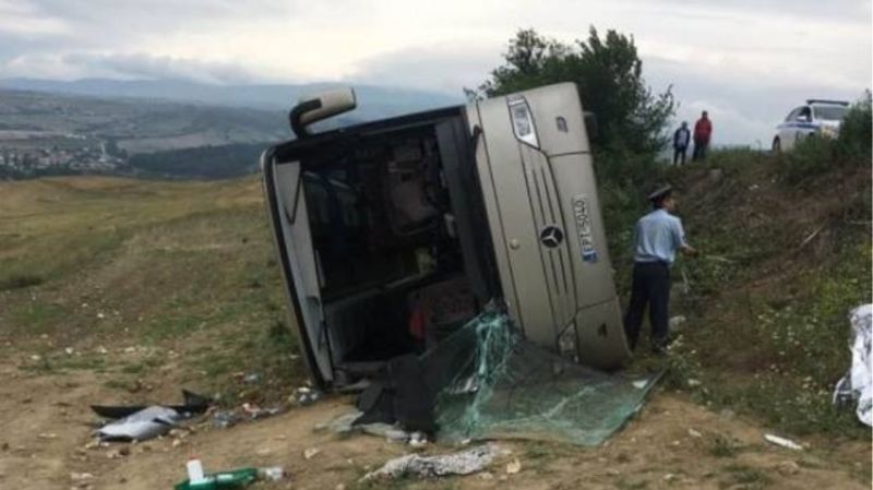 Δεκατέσσερις τραυματίες μετά από ανατροπή λεωφορείου