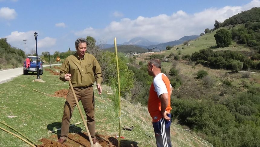 Η δενδροφύτευση έγινε από τον χώρο της Ιεράς Μονής του Αγίου Κοσμά μέχρι το Μέγα Δένδρο.