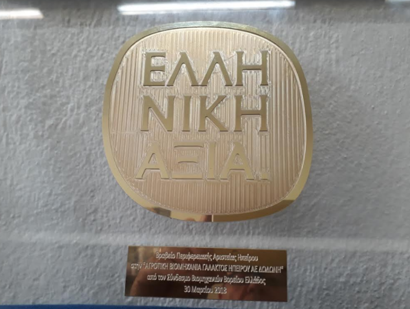 Σημαντική διάκριση απέσπασε η ΔΩΔΩΝΗ, κορυφαία γαλακτοβιομηχανία της Ηπείρου στα φετινά βραβεία «ΕΛΛΗΝΙΚΗ ΑΞΙΑ Βορείου Ελλάδος 2018», στην κατηγορία «Περιφερειακή Αριστεία Ήπειρος», για την πολύτιμη συμβολή και δραστηριότητά της στην τοπική κοινωνία της Ηπείρου και των Ιωαννίνων.