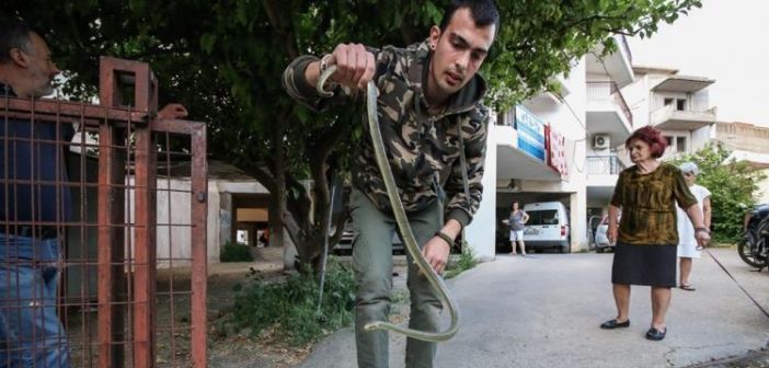 Διάσωση φιδιού στο κέντρο του Αγρινίου (Βίντεο)