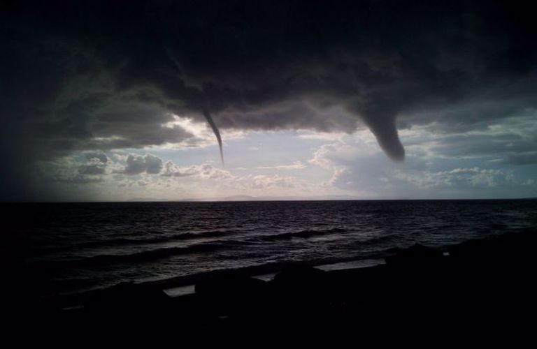 Το σκούρο σύννεφο σκεπάζει τον ουρανό σιγά-σιγά και στην άκρη σαν δίδυμοι, κάνουν την εμφάνισή τους οι δύο περιστρεφόμενες στήλες ανέμου, οι υδροσίφωνες, που συνήθως αποφύονται από τη βάση τεράστιων καταιγιδοφόρων νεφών.
