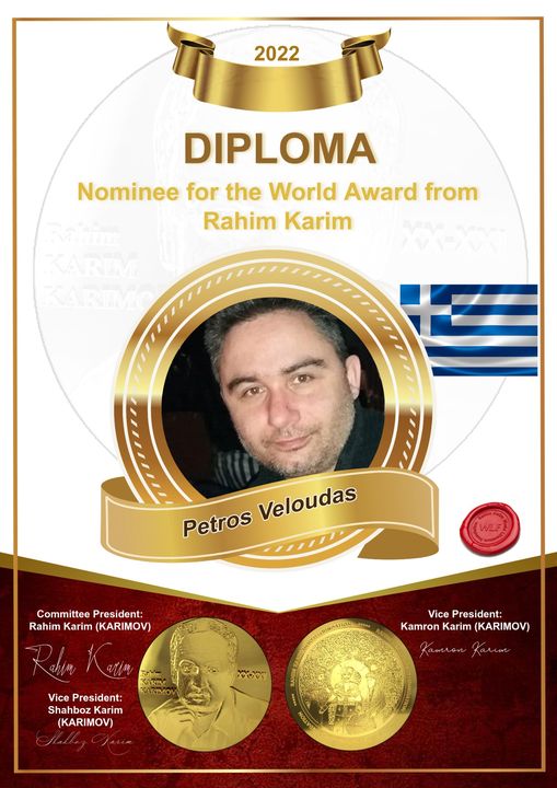Την Τετάρτη 24 Αυγούστου 2022, απονεμηθηκε το βραβείο αριστείας ποίησης των διεθνώς λογοτεχνικών βραβείων ποιησης Rahim Karimov απο την Ρωσσία, στον Αγρινιώτη ποιητή Πέτρο Κυριάκου Βελούδα – καθηγητή, παιδαγωγό, πρεσβευτή ποιητή της ισότητας στο Μπαγκλαντές, ακαδημαικό ποιητή της ακαδημίας ποίησης AMCL στην Βραζιλία, μέλος της διεθνούς εταιρείας Ελλήνων λογοτεχνών.