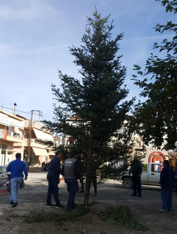 Δημήτρης Αναστασίου: «Τοποθετήθηκε το Χριστουγεννιάτικο Δέντρο στην Πλατεία Καλυβίων» (Photos)