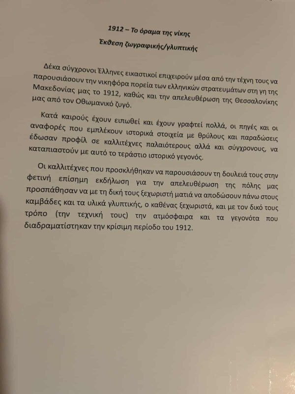 Η Έκθεση φιλοξενείται στη Λέσχη Αξιωματικών Φρουράς στη Θεσσαλονίκη και παρουσιάζει έργα σύγχρονων καλλιτεχνών που αναδεικνύουν την ιστορική πορεία της Ελλάδας προς την ελευθερία.