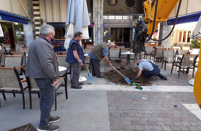 Το πρωί, συνεργεία της Διεύθυνσης Περιβάλλοντος και Πρασίνου, αντικατέστησαν τα δένδρα που είχαν καταστραφεί στην πλατεία Δημοκρατίας.
