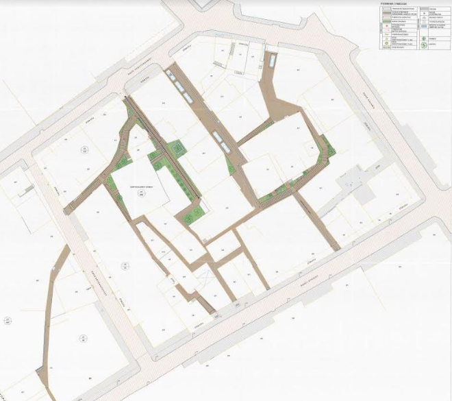 - δημιουργία χώρων πρασίνου στους πλατύτερους πεζόδρομους με διαφορετικές ανθοφορίες ανά εποχές σε συνδυασμό με φυλλοβόλα και αειθαλή αναρριχητικά φυτά και θάμνους ώστε να διαμορφώνουν σκιαγμένους χώρους κίνησης, στάσης και ανάπαυσης όλες τις εποχές.
