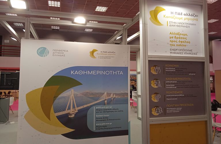 O Δήμος Αγρινίου φιλοξενείται στο περίπτερο της Περιφέρειας Δυτικής Ελλάδας με κεντρικό θέμα: «Η Π.Δ.Ε. αλλάζει. Κοιτάζουμε μπροστά στην ηλεκτρονική διακυβέρνηση».