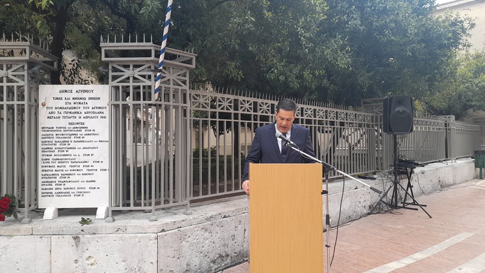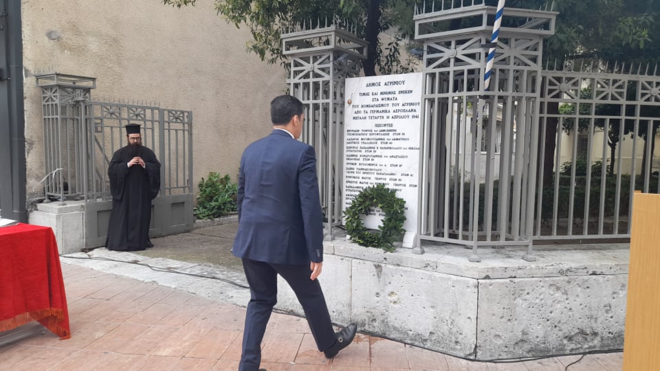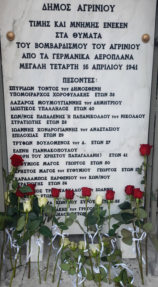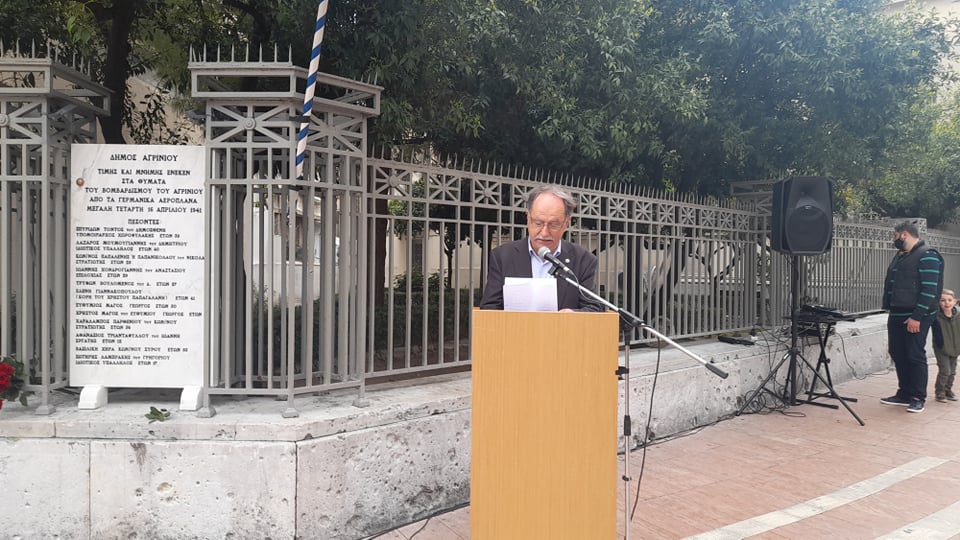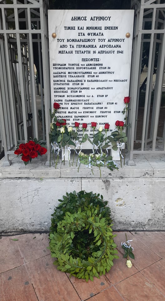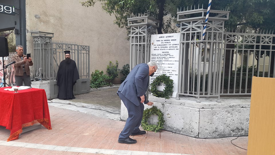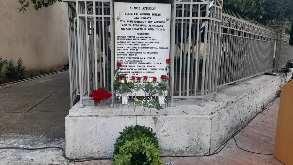 Στο ιστορικό της ημέρας αναφέρθηκε ο Πρόεδρος του Συνδέσμου Αποστράτων Σωμάτων Ασφαλείας Αγρινίου κ. Δημήτρης Τσούνης :” Τα πολεμικά ανακοινωθέντα της εποχής ανέφεραν: «Γερμανικά αεροπλάνα βομβάρδισαν και πυροβόλησαν το Αγρίνιο με ολίγα θύματα εκ του αμάχου πληθυσμού και μικράς ζημίας». ‘Όλοι τους είναι ήρωες. Οι δικοί μας ήρωες. Αιωνία η μνήμη αυτών που θυσιάστηκαν για την ελευθερία της πατρίδας».