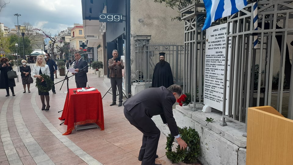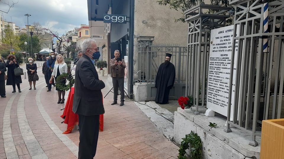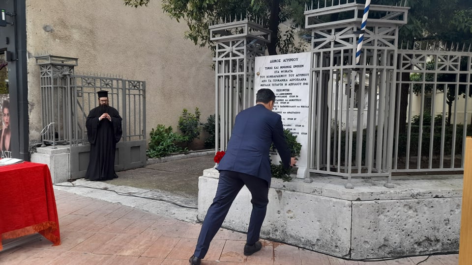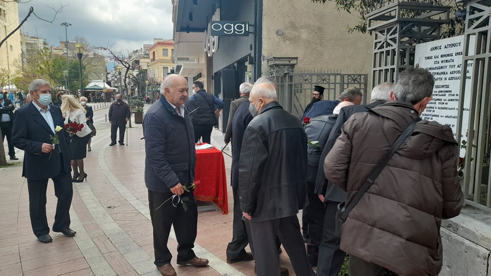 Στην οδό Αναστασιάδη, όπου βρίσκεται η τιμητική επιγραφή με τα ονόματα των Αγρινιωτών που έχασαν την ζωή τους, στεφάνι κατέθεσαν ο Δήμαρχος Αγρινίου, ο πρ. του Δημοτικού Συμβουλίου Ν. Καζαντζής, ο πρ. του Συνδέσμου Αποστράτων Σωμάτων Ασφαλείας Αγρινίου. Δημήτρης Τσούνης, η πρ. της Κ. Αγρινίου Φωτεινή Βλάχου, εκπρόσωποι της οικογένειας Τόντου και Μουμουγιάννη, ο πρ της Ένωσης Αποστράτων Αξ. Στρατού Περικλής Τσάντζαλος.