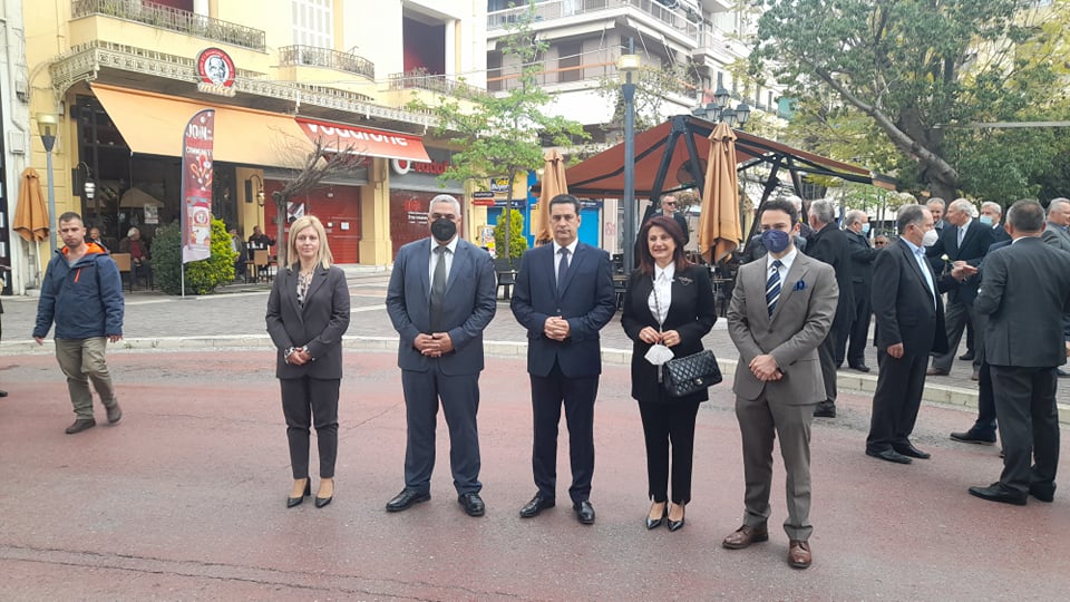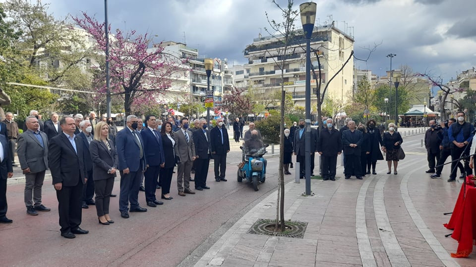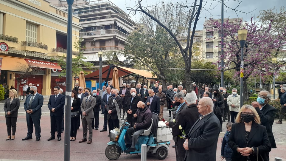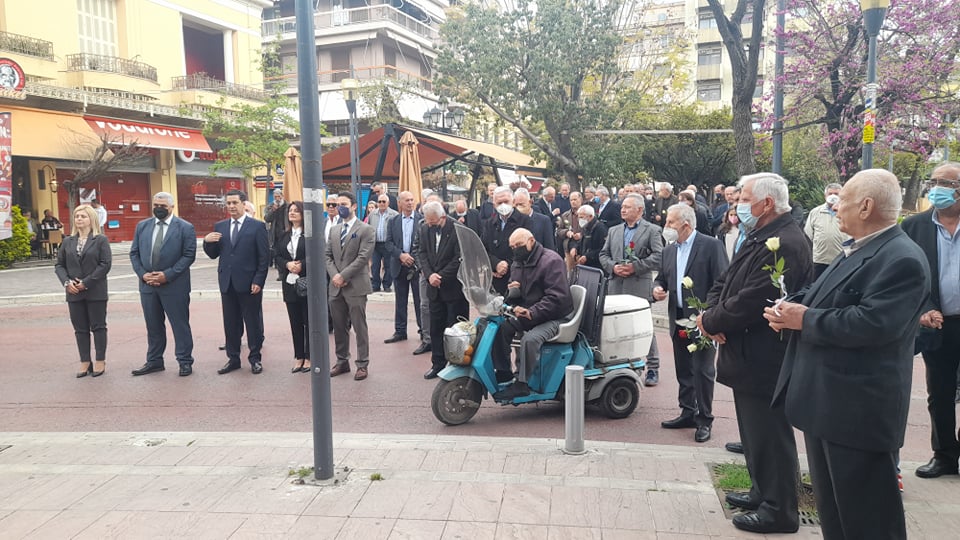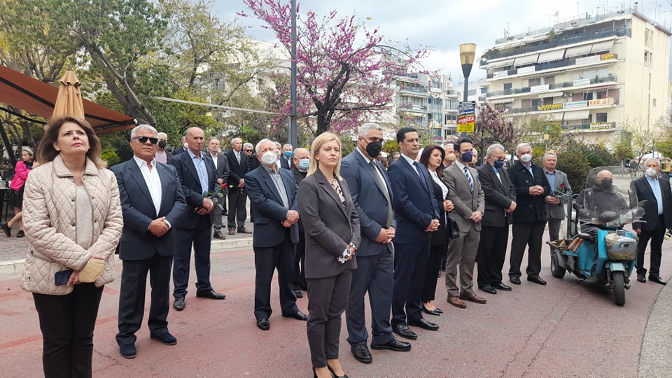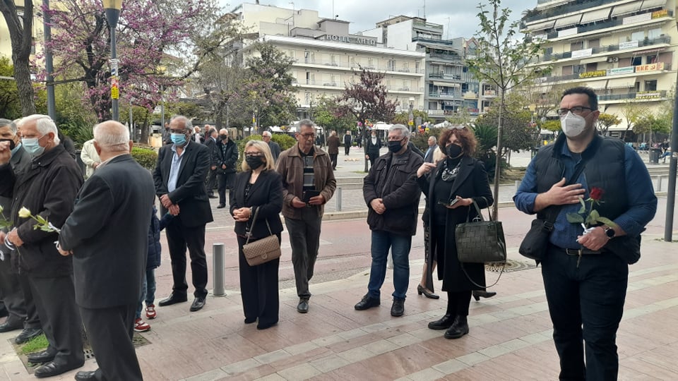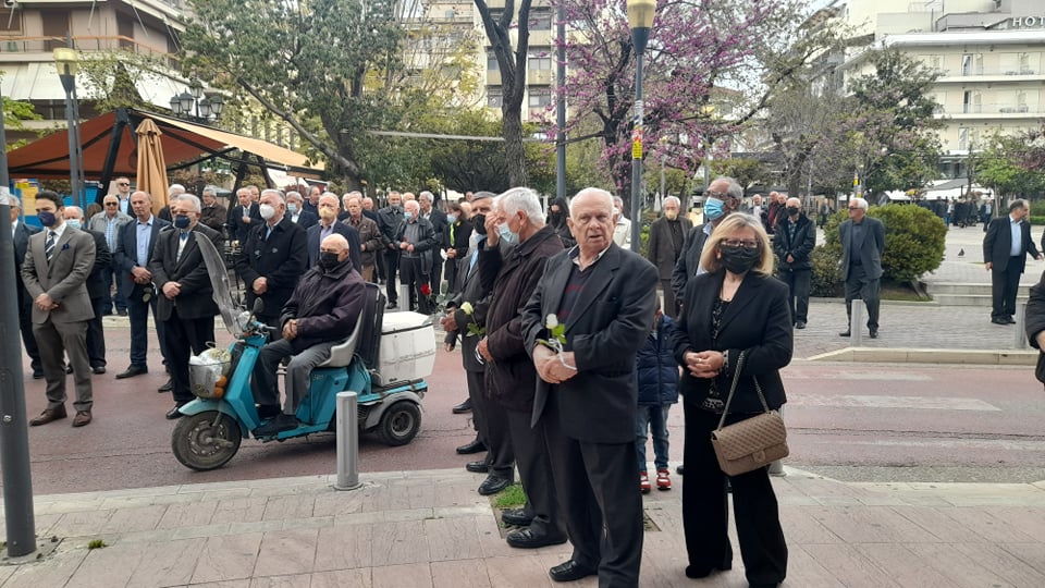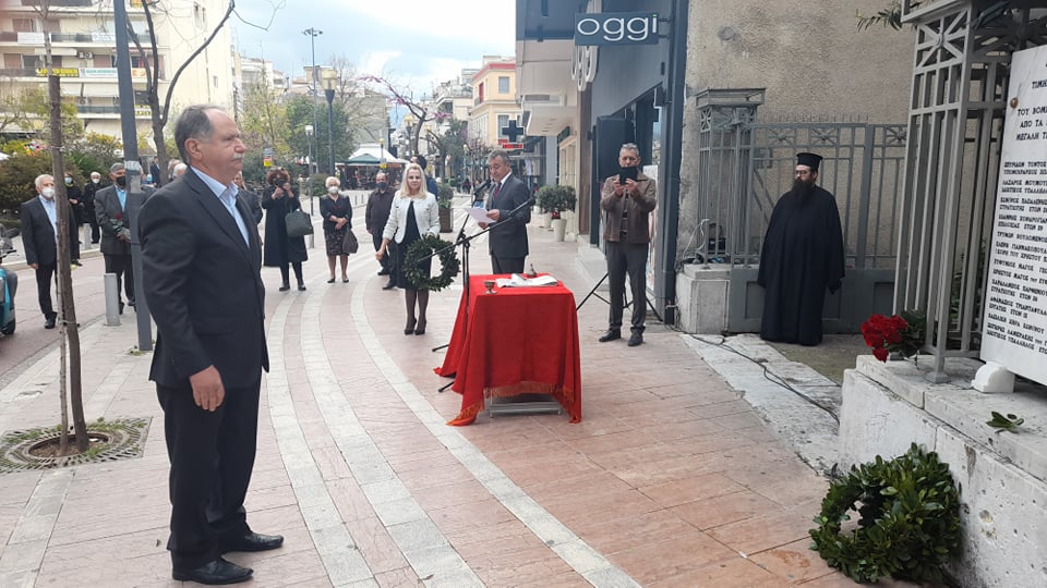 Παρόντες στην εκδήλωση συγγενείς και των θυμάτων, οι Αντιδήμαρχοι Μαρία Παπαγεωργίου και Κωνσταντίνος Ζώης.