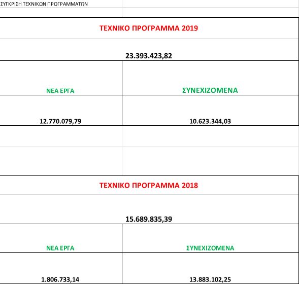 Να σημειωθεί ότι στο νέο Τεχνικό Πρόγραμμα του 2019 περιλαμβάνονται κι άλλες μεγάλες παρεμβάσεις όπως: