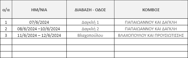 Ακολουθεί αναλυτικός πίνακας προγράμματος εργασιών των επόμενων ημερών: