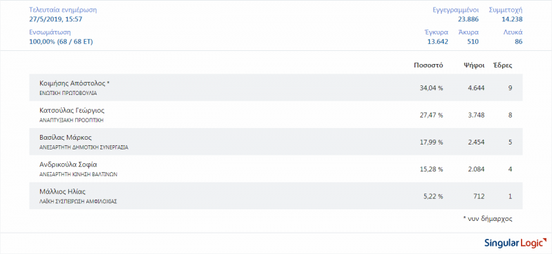 ΛΑΪΚΗ ΣΥΣΠΕΙΡΩΣΗ ΑΜΦΙΛΟΧΙΑΣ | ΜΑΛΛΙΟΣ ΗΛΙΑΣ | 712 | 5,22% |