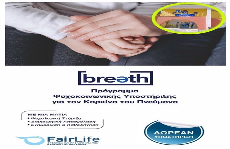 Η Κοινωφελής Επιχείρηση του Δήμου Ξηρομέρου σε συνεργασία με τον μη κερδοσκοπικό κοινωνικό φορέα «FairLife – Φροντίδα και Πρόληψη για τον καρκίνο του πνεύμονα» στα πλαίσια της ευαισθητοποίησης του κοινού σχετικά με τον καρκίνο του πνεύμονα, γνωστοποιεί στους δημότες την υλοποίηση του προγράμματος Ψυχοκοινωνικής-Υποστήριξης breath, που παρέχεται ΔΩΡΕΑΝ για ασθενείς, φροντιστές και μέλη των οικογενειών τους σε συνεργασία με έμπειρους κι εξειδικευμένους επαγγελματίες ψυχικής υγείας από αναγνωρισμένους φορείς.