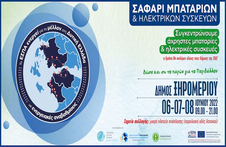 Ο Δήμος Ξηρομέρου συμμετέχει στην σημαντική δράση της Περιφέρειας Δυτικής Ελλάδας: ”ΣΑΦΑΡΙ ΜΠΑΤΑΡΙΩΝ & ΗΛΕΚΤΡΙΚΩΝ ΣΥΣΚΕΥΩΝ”.