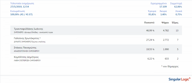 Συνολικά Αποτελέσματα στo Δήμο: ΞΗΡΟΜΕΡΟΥ – 41 από 41 Εκλογικά Τμήματα