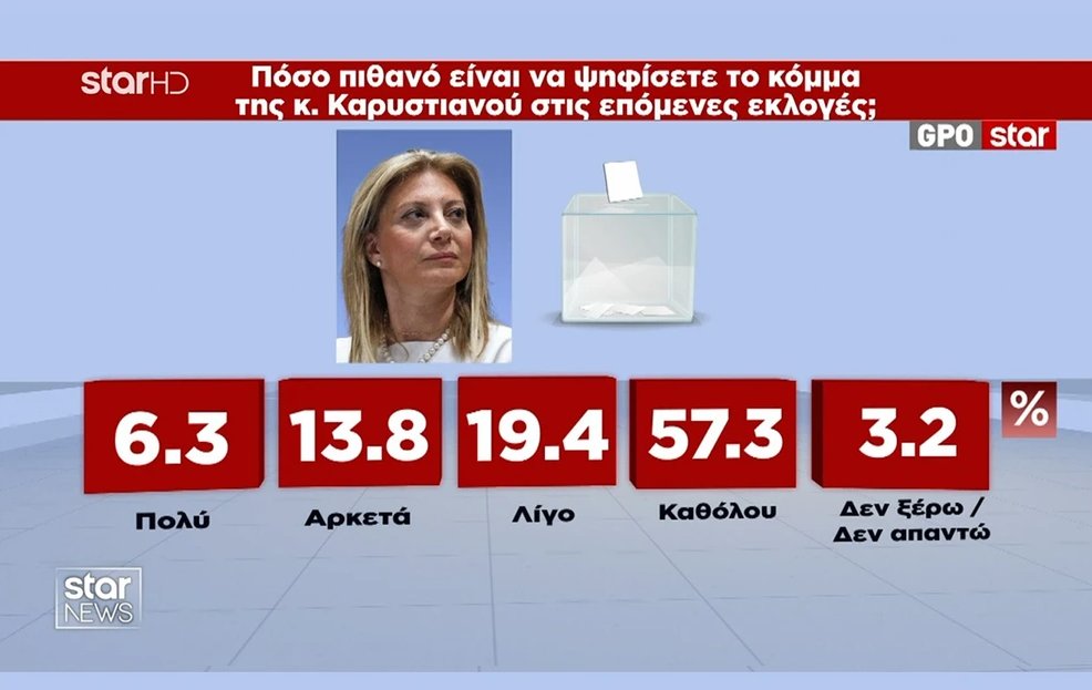1 στους 4 εμφανίζεται ως δυνητικός ψηφοφόρος της Μ. Καρυστιανού.