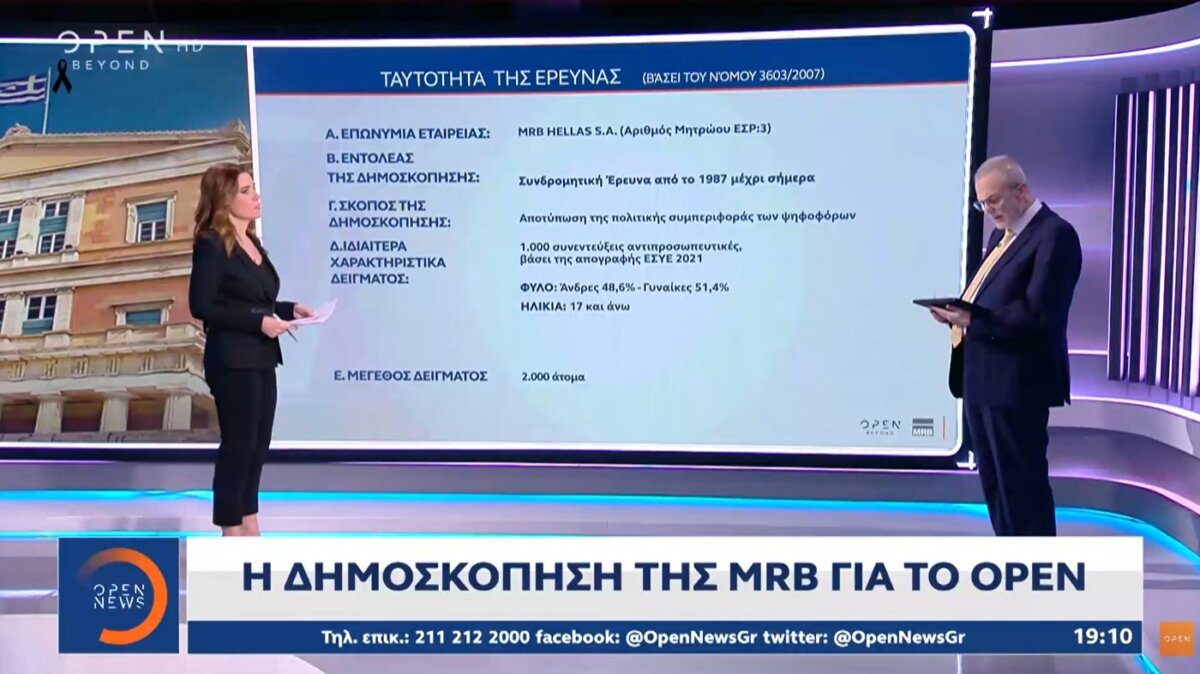 Η Δημοσκόπηση της MRB για το Open Beyond παρουσιάστηκε την 29η Ιανουαρίου στο Κεντρικό Δελτίο Ειδήσεων – Σοκάρει άπαντες το ποσοστό του ΠΑ.ΣΟ.Κ. στην πρόθεση ψήφου.