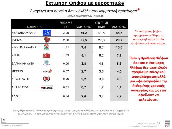 Η πανελλαδική έρευνα έγινε σε 2.000 πολίτες με δικαίωμα ψήφου, με τη μέθοδο των προσωπικών συνεντεύξεων (face to face) και διεξήχθει στις 27 Νοεμβρίου-5 Δεκεμβρίου 2019.
