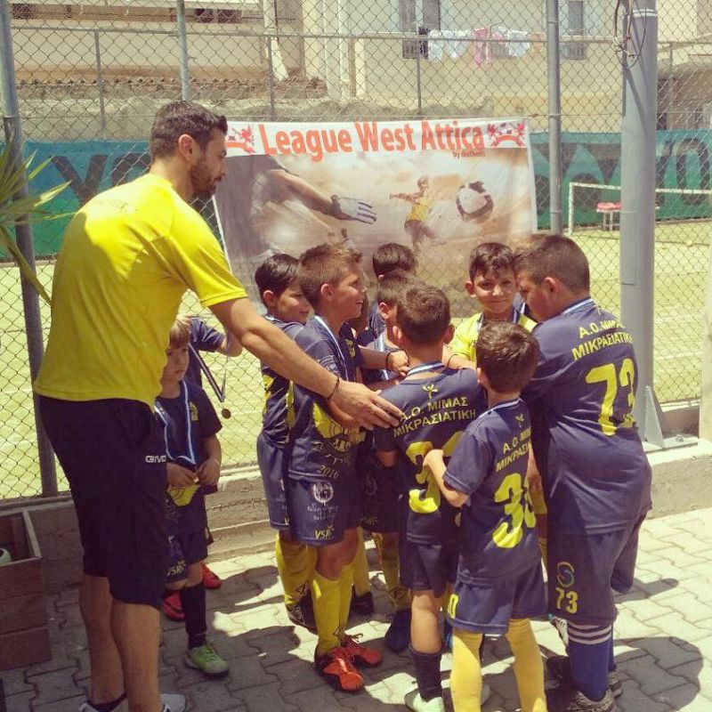 Μάλιστα, ως προπονητής της παιδικής ομάδας «Κ8 Α.Ο. Μίμας Μικρασιατική» η οποία αποτελείται από 20 μικρούς μάγους του ποδοσφαίρου. Παιδιά τα οποία μέσα σε δύο χρόνια κατάφεραν να κερδίσουν τις εντυπώσεις και τις καρδιές μας βέβαια, τόσο στα Μέγαρα αλλά και σε μεγάλα τουρνουά, όπως στο Λουτράκι πριν ένα μήνα, εκεί όπου κατέκτησαν τη πρώτη θέση αλλά και στο πρωτάθλημα στο οποίο πήραν μέρος στον έναν από τους πέντε τελικούς κατακτώντας και σε αυτό την πρώτη θέση.
