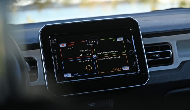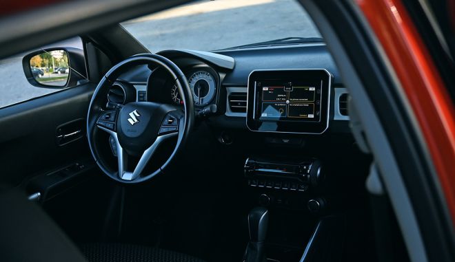 Το εσωτερικό παραμένει απέριττο και αλλάζει λίγο σε αυτή τη νέα έκδοση του Ignis, με νέες ταπετσαρίες και χωρίς το πορτοκαλί χρώμα στο ταμπλό που το έκανε λίγο πιο φωτεινό. Επίσης, αλλάζει και με την αναβάθμιση των υλικών, ενώ στο κέντρο του ταμπλό παραμένει η σούπερ εύχρηστη έγχρωμη οθόνη αφής των 7 ιντσών για τον έλεγχο των πολυμέσων και της συνδεσιμότητας του smartphone, μέσω Android Auto και Apple CarPlay.