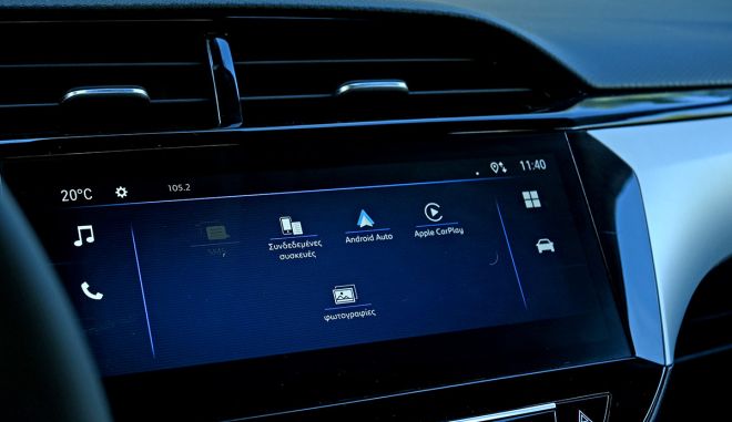 Μια σπουδαία αλλαγή στο ταμπλό είναι η νέα οθόνη αφής για τα πολυμέσα και τη συνδεσιμότητα, που είναι αφομοιωμένη στο σχέδιο -και όχι αιωρούμενη- και αναλόγως της έκδοσης έχει μέγεθος 7 έως 10 ιντσών. Προσφέρει ασύρματη σύνδεση του κινητού μέσω Apple CarPlay και Android Auto, ενώ ένα πολύ σημαντικό στοιχείο είναι ότι με το νέας γενιάς λογισμικό της Opel λειτουργεί πολύ πιο γρήγορα και πιο απλά -στοιχείο σημαντικό για τον χειρισμό της εν κινήσει- και με πιο ωραία γραφικά.