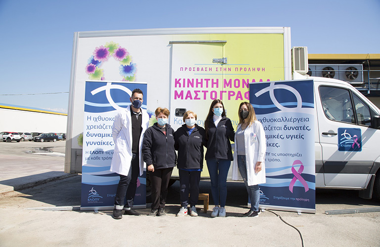 Στο πλαίσιο των δράσεων κοινωνικής ευθύνης προς τους εργαζόμενους στις εταιρείες-μέλη της, η Ελληνική Οργάνωση Παραγωγών Υδατοκαλλιέργειας (ΕΛΟΠΥ) υλοποιεί, σε συνεργασία με την Ελληνική Αντικαρκινική Εταιρεία, ένα πρόγραμμα για δωρεάν μαστογραφικό έλεγχο σε όλες τις γυναίκες που εργάζονται στις εταιρείες-μέλη της και στους συγγενείς πρώτου βαθμού όλων των εργαζομένων.