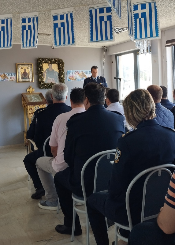 «Η Ελληνική Αστυνομία, τιμά την Εθνική Επέτειο της 28ης Οκτωβρίου 1940, και η εκφώνηση του πανηγυρικού, αποτελεί τον ελάχιστο φόρο τιμής στους προγόνους μας, που αγωνιστήκαν και έπεσαν υπέρ της Πατρίδας, για να εξασφαλίσουν ότι θα αναπνέουμε αέρα ελευθερίας.