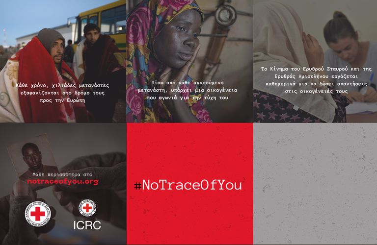 Για τη φετινή Διεθνή Ημέρα των Εξαφανισμένων, ο Ελληνικός Ερυθρός Σταυρός και η Αποστολή της ICRC στην Αθήνα, μαζί με άλλα μέλη του Κινήματος του Ερυθρού Σταυρού και της Ερυθράς Ημισελήνου στην Ευρώπη, πραγματοποιούν μια εκστρατεία ευαισθητοποίησης με σκοπό να φέρουν την τραγωδία των αγνοούμενων μεταναστών στο προσκήνιο: το #NoTraceOfYou. Το κοινό μπορεί να επισκεφτεί την ιστοσελίδα του #NoTraceOfYou για να μάθει περισσότερα για αυτό το ζήτημα.