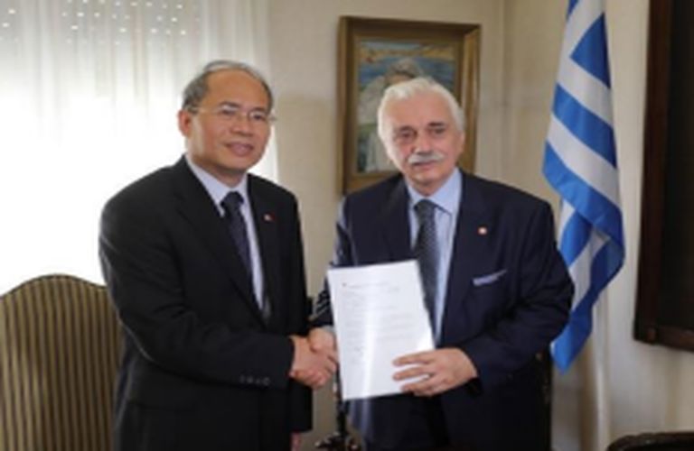 Ε.Ε.Σ.: Παραλαβή επιταγής 100.000 δολαρίων από τον Πρέσβη της Κίνας για τους πυρόπληκτους