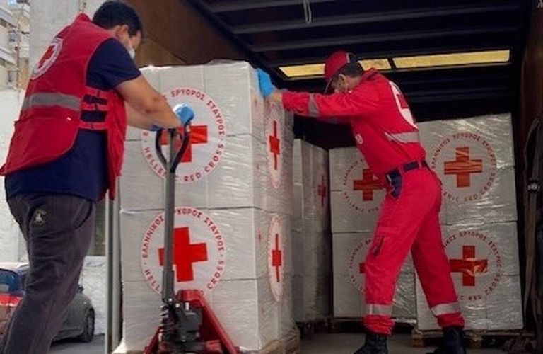 Ήδη, σήμερα αποστέλλονται δέκα τόνοι υλικών και θα συνεχίσουμε τις αποστολές σε συνεργασία με τον Ερυθρό Σταυρό του Λιβάνου.