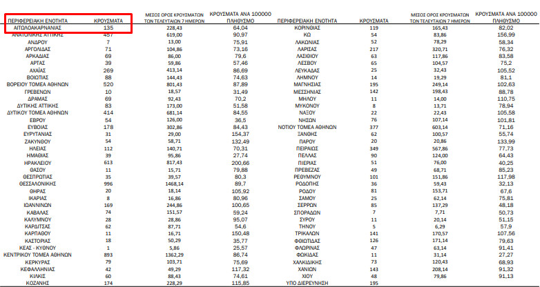 Η κατανομή των 9.189 νέων εγχώριων κρουσμάτων ανά Περιφερειακή Ενότητα παρουσιάζεται στον κατωτέρω πίνακα: