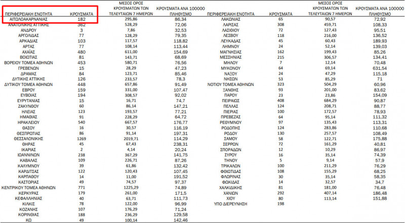 Ε.Ο.Δ.Υ.: 182 νέα κρούσματα στην Π.Ε. Αιτωλοακαρνανίας
