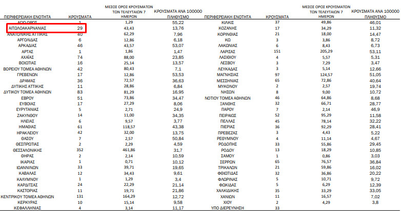 Η κατανομή των 2.086 νέων εγχώριων κρουσμάτων ανά Περιφερειακή Ενότητα παρουσιάζεται στον κατωτέρω πίνακα: