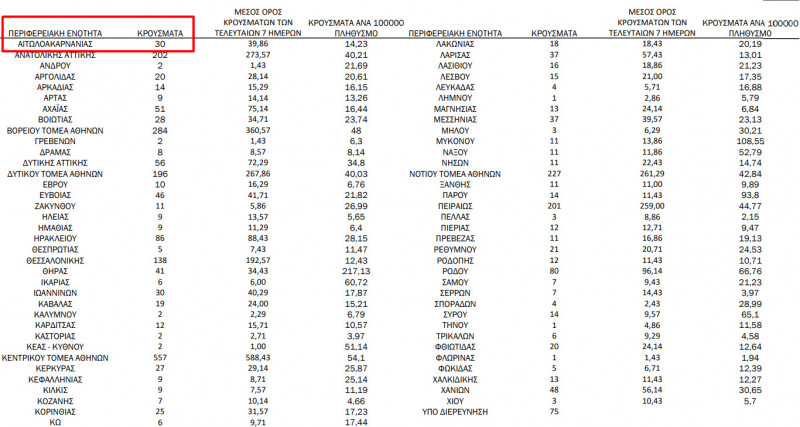 Ε.Ο.Δ.Υ.: 30 νέα κρούσματα στην Π.Ε. Αιτωλοακαρνανίας