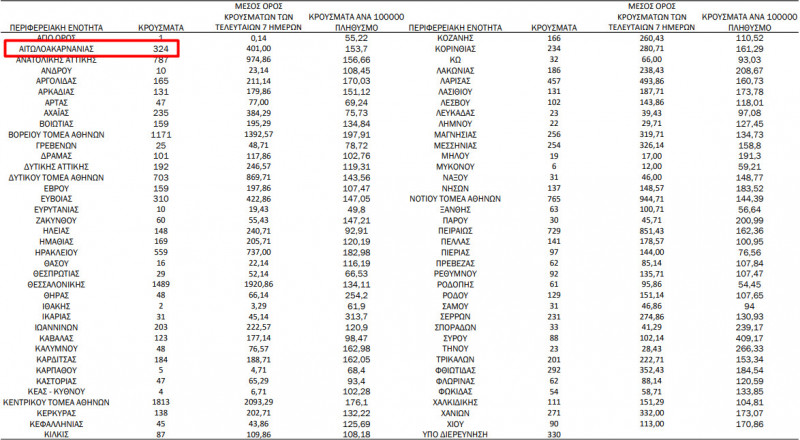 Η κατανομή των 15.820 νέων εγχώριων κρουσμάτων ανά Περιφερειακή Ενότητα παρουσιάζεται στον κατωτέρω πίνακα:
