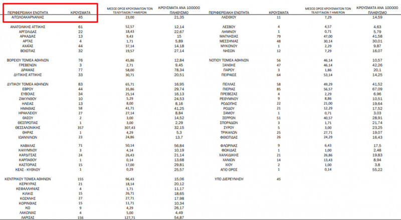 Ε.Ο.Δ.Υ.: 45 νέα κρούσματα στην Π.Ε. Αιτωλοακαρνανίας