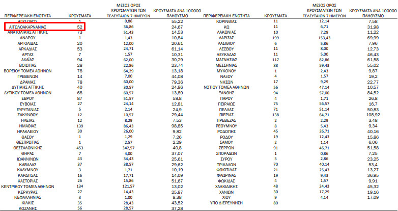 Η κατανομή των 3.139 νέων εγχώριων κρουσμάτων ανά Περιφερειακή Ενότητα παρουσιάζεται στον κατωτέρω πίνακα: