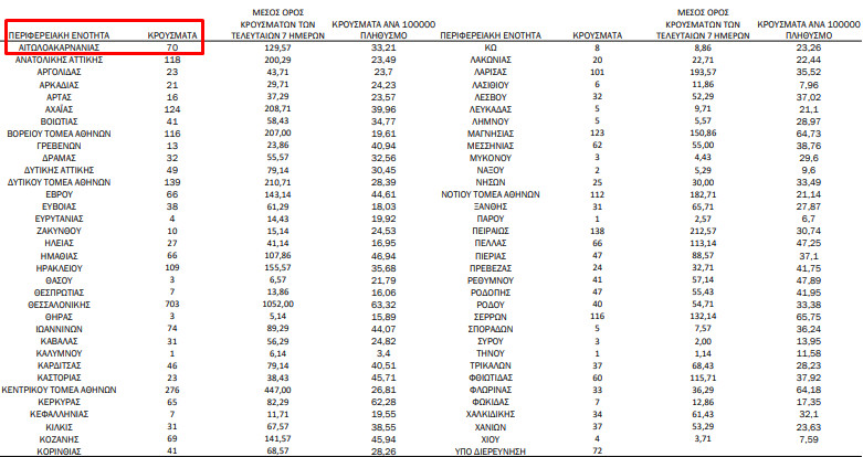 Ε.Ο.Δ.Υ.: 70 νέα κρούσματα στην Π.Ε. Αιτωλοακαρνανίας