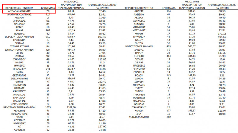 Ε.Ο.Δ.Υ.: 79 νέα κρούσματα στην Π.Ε. Αιτωλοακαρνανίας