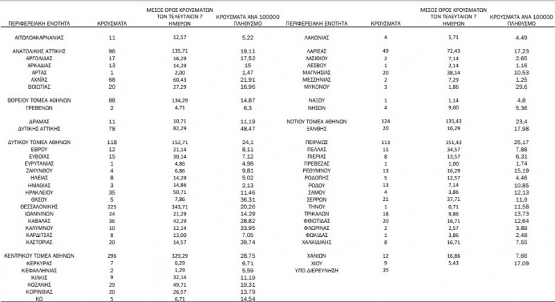 Η κατανομή των 1.822 νέων εγχώριων κρουσμάτων ανά Περιφερειακή Ενότητα παρουσιάζεται στον κατωτέρω πίνακα