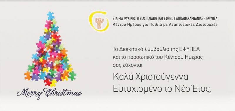 Το Διοικητικό Συμβούλιο της Ε.Ψ.Υ.Π.Ε.Α και το προσωπικό του Κέντρου Ημέρας σας εύχονται Καλά Χριστούγεννα – Ευτυχισμένο Νέο Έτος