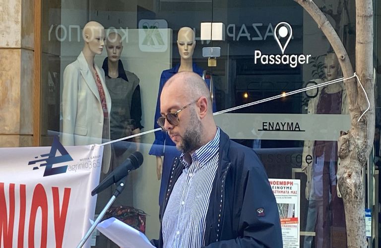 Συνάδελφοι σας καλούμε να περπατήσουμε μαζί σε κάποιους κεντρικούς δρόμους της πόλης μας, μπροστά από τα δικά μας κλειστά μαγαζιά και να κατευθυνθούμε προς την κεντρική πλατεία όπου η Κοινωνία σήμερα απεργεί».