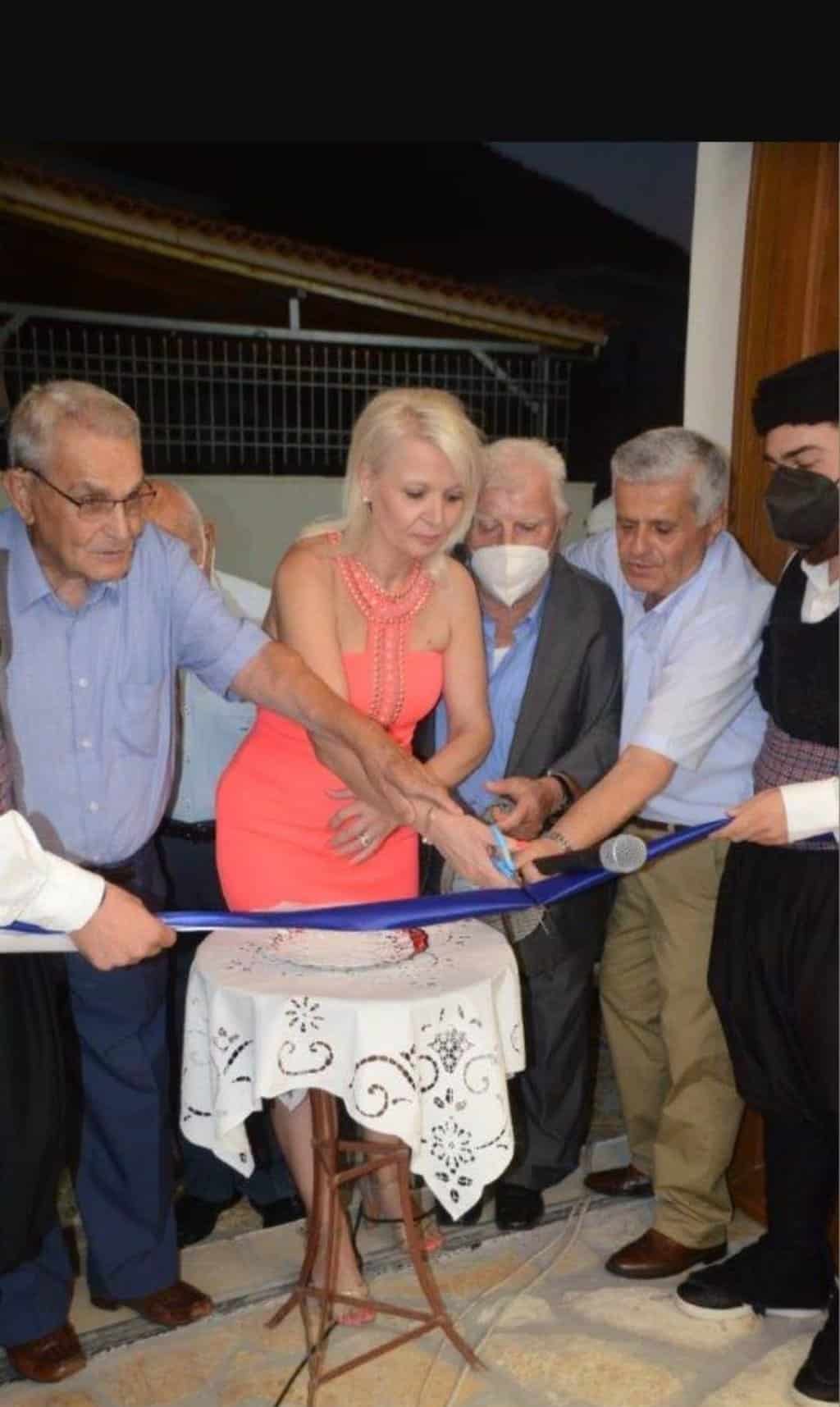 ε. Η παραδοσιακή κοπή της κορδέλας των εγκαινίων από την Πρόεδρο του Πολιτιστικού Συλλόγου, τον Πρόεδρο της Επιτροπής Διαχείρισης του Λαογραφικού Μουσείου και τους Προεστούς του χωριού.