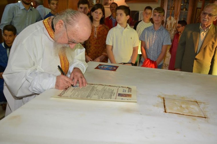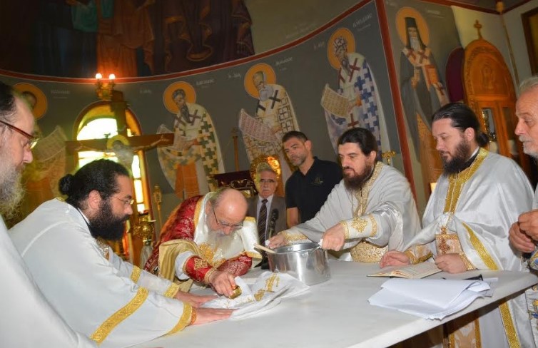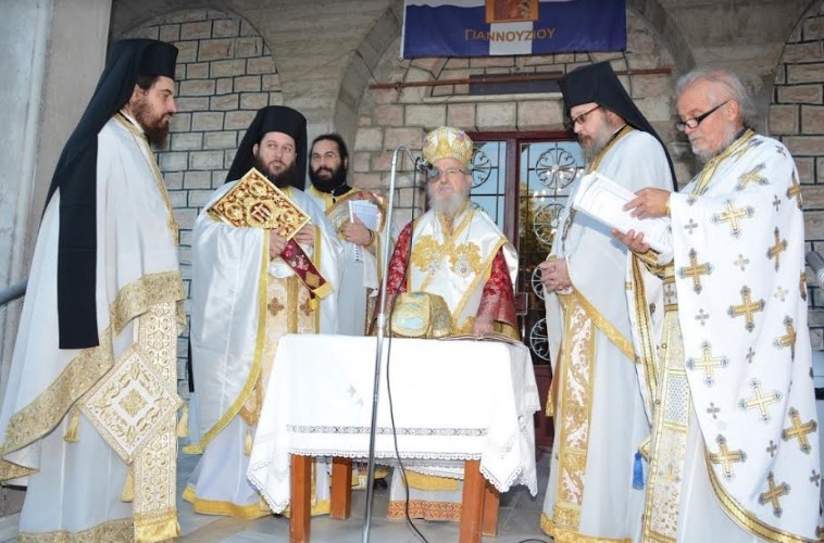 Ο Σεβασμιώτατος χοροστάτησε στην ακολουθία του Όρθρου και στη συνέχεια τέλεσε την ακολουθία των Εγκαινίων. Ακολούθως προεξήρχε στην πρώτη πανηγυρική Θεία Λειτουργία στην εγκαινιασμένη πλέον Αγία Τράπεζα.