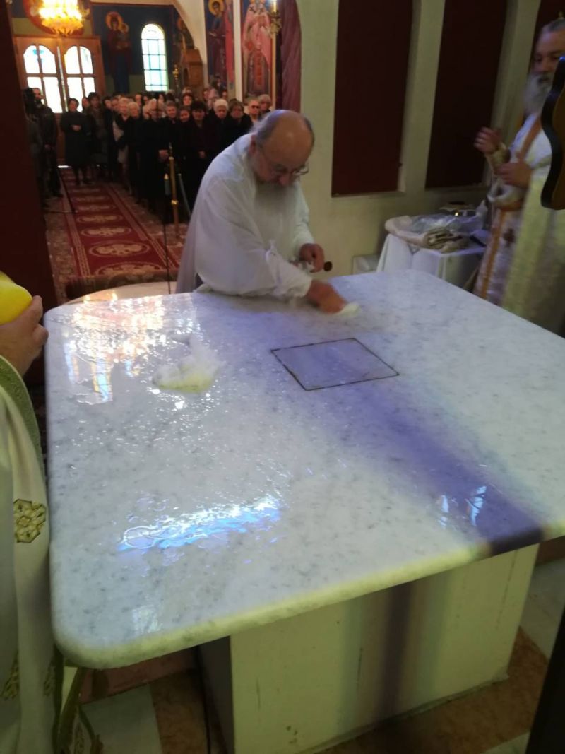 Επίσης ο Σεβασμιώτατος ευχαρίστησε όλους τους κατοίκους της Ενορίας για την φροντίδα τους και την συμπαράστασή τους στην ανέγερση και τον εξωραϊσμό του Ναού, αναφέρθηκε αναλυτικά στα Ιερά Λείψανα τα οποία τοποθετήθηκαν κατά την ακολουθία στο κέντρο της Αγίας Τραπέζης, εξηγώντας ιδιαιτέρως το τι σημαίνει η παρουσία των Ιερών Λειψάνων μέσα στην Αγία Τράπεζα.